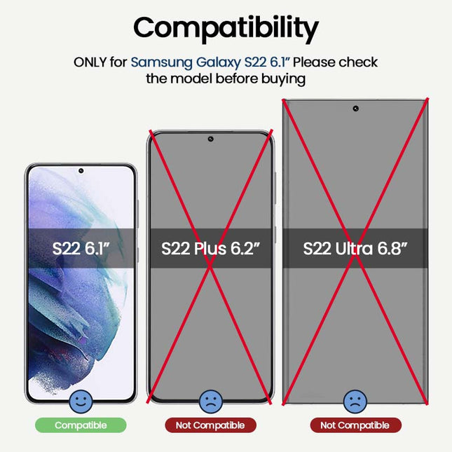 Samsung Galaxy S22 Privacy tempered glass screen protector provides edge to edge coverage. The top layer of the glass has an anti fingerprint screen. Privacy Glass is scratch-resistant and remains tough under any impact. Privacy Glass provides a two-way filter to offer privacy protection when viewed from the sides. Maintains the original native touch experience with a barely-there thickness of 0.2 mm