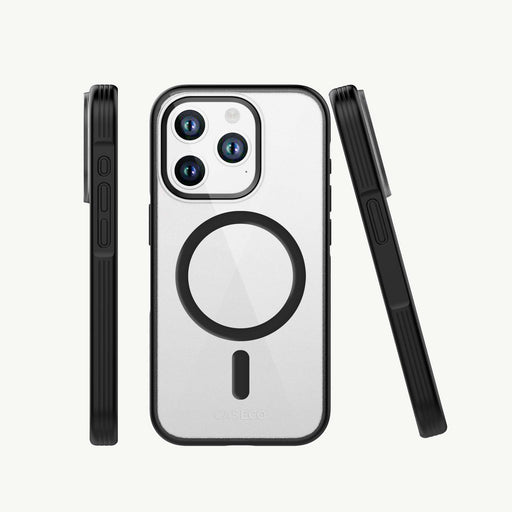 Fremont Grip Frost Clear Back with Matching Camera & Magsafe Ring - Black using double-layered military-grade materials for maximum impact protection Designed for use with all Caseco, Apple, and third-party MagSafe compatible products Feel protected all day without the bulk with 10-foot drop protection in a sleek, pocket-friendly design Inverted grooves along the side edges of the case provide enhanced grip, while the tactile buttons ensure you always get that satisfying “click” feeling. Designed with a MagSafe-compatible N52 magnet array for a strong connection