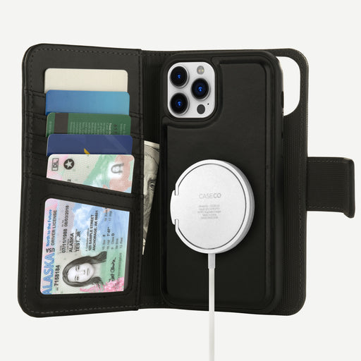 iPhone 13 Pro Max MagSafe Park Ave Case is designed for MagSafe Charger 2-in-1 design with Detachable Slim magnetic case 2 credit card slots and compartment for cashProtects card information from being stolen with RFID shielding technology Designed to provide shock absorption on sudden drop Wireless charger and Magnetic car mount compatible BPA free no animal being killed making this case
